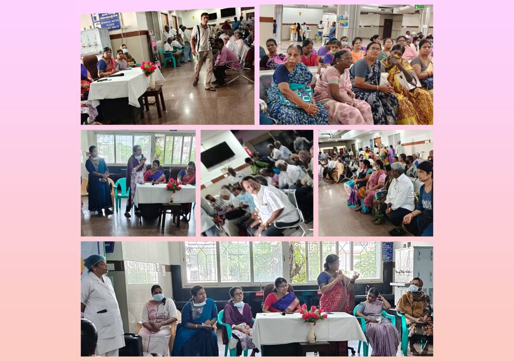 Dr.K.P.Lalitha, ACHD/HFW, delivered the introductory speech followed by Dr.P.RamaPrabha, DMO/RH/PER, who led the discussion on the theme of the year “Older Persons Driving Local and Global Action: Our Aspirations, Our Well-Being and Our Rights”. Dr.J.Chitra,CSS/Admin highlighted the healthy ageing and promoting healthy living conditions for elderly that respect the dignity and needs of older persons. Dr A.Priya Shaunthini CSS/RH/Per, emphasised on the well-being of the elderly communities.